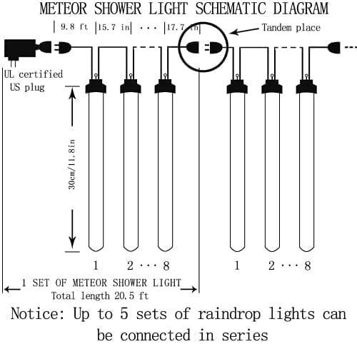 ROMANTIC METEOR SHOWER EFFECT – The Twinkling Romantic Lights of every bulb turns on and out one by one in sequence and quickly just like meteor shower or falling snow in the night sky. If you get a set with 8 tubes cascading at the same time, plug it for a certain time, it will cascade at random, Because every tube has an individual IC, will fall at random.
