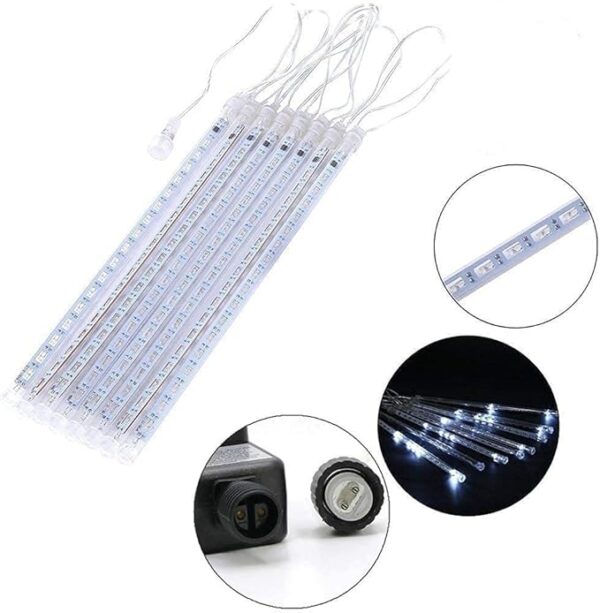 HIGH QUALITY & ENERGY EFFICIENT – The Meteor Shower LED Lights is Waterproof, dust proof; transparent PC material, corrosion resistant, cost resistant, aging resistant, more durable; Also The Falling Raindrop lights is free from time and space constraints, low power consumption and energy saving. It can be used as one or be connected (as many as five string lights).