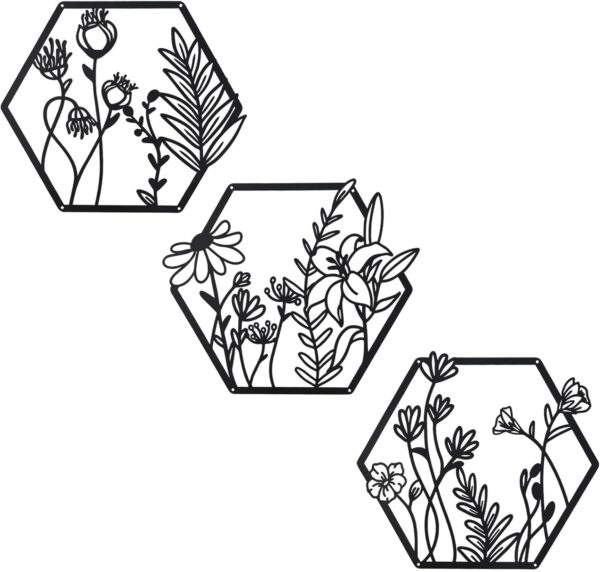 Material: Metal Size as show. 3 pieces metal floral wall decors. We provide you with screws,to hang them easily on the wall. Suitable for living room,bedroom,kitchen,bathroom,hallway and office. Reviews There are no reviews yet. Be the first to review “3 Pcs Metal Flower Wall Art, Farmhouse Wall Decor (Black)”Cancel ReplyYour email address will not be published. Required fields are marked *Your rating * Rate… Perfect Good Average Not that bad Very poor Name *Email *Your review * Save my name, email, and website in this browser for the next time I comment. Submit