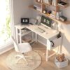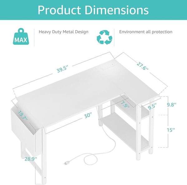 Modern Simple Style Design: Computer desk with 2 storage shelves, you can try this two installation methods (left or right), and have two different heights of installation, you can customize the storage space to your needs. This splice board desk is made of thick P2 particle wood board with scratch-resistant, anti-collision and waterproof, protect home office desk surface from daily wear and tear.