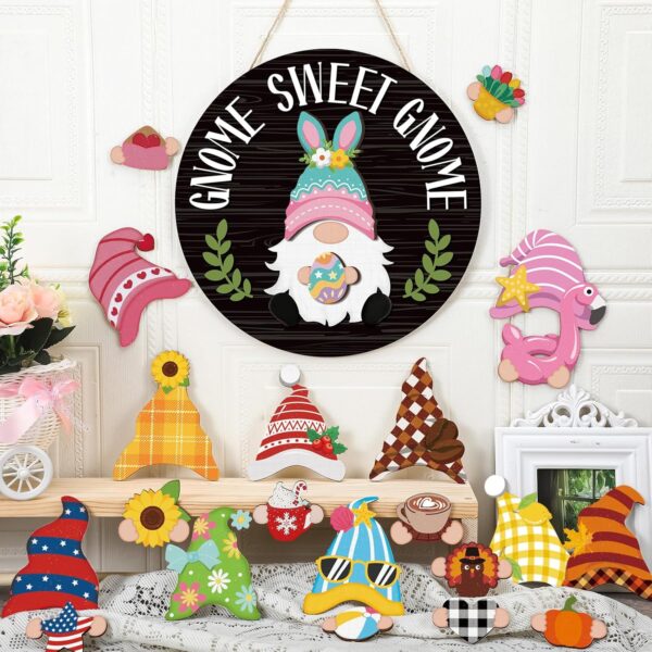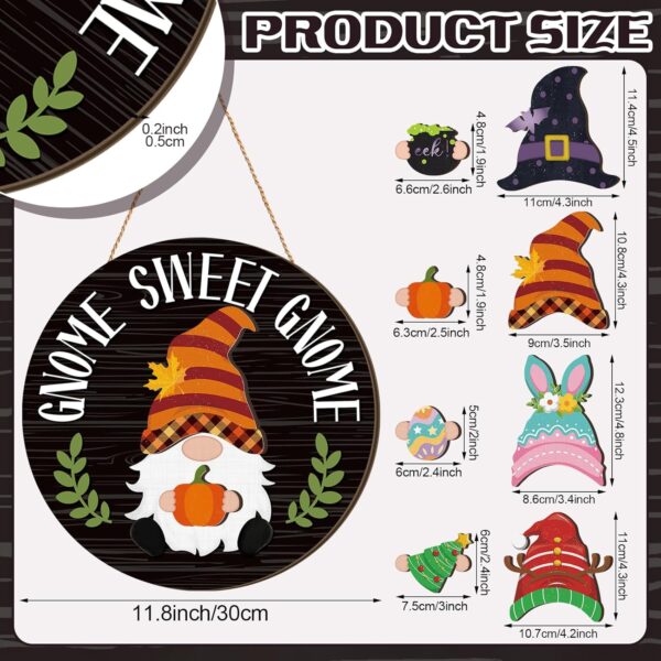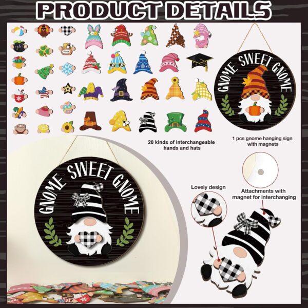 • Change As You Want: holiday sign allows you to swap hats and hands of your gnomes for fun; Thanks to the equipped magnets fitted in the gnome sign’s head and chest, you can easily replace with different festive themes by changing gnome hats and hands, remain securely held and can be replaced conven aptly per season or celebratory occasion; Pre installed rope on the sign saves your time