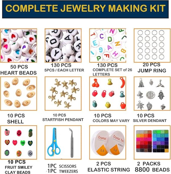 【Glass Seed Beads Kit】 This glass beads for jewelry making kit comes everything you need to get started,all in one. the beads kit includes 8800+ seed beads, 260 letter beads(complete set of 26 letters), 50 heart beads, 20 charms, 10 shells, 10 starfish pendants, 2 rolls elastic string , 1 tweezers and 1 safety scissors. this is perfect kit if you are just looking to start jewelry making !