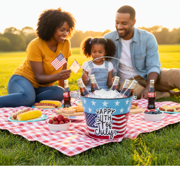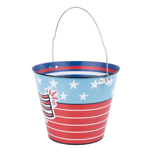 Compact Versatile Size: Measuring 9″ x 7.5″, this bucket is perfectly sized to serve as a festive ice bucket, a snack holder, or a unique patriotic centerpiece.