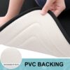 STABLE FOOTING Our bathroom mat is equipped with a robust and enduring PVC backing, preventing shifting and skidding. Unlike mats with rubber backing that may wear off after washing, our bath mat ensures lasting durability. For a secure footing, keep the floor beneath the rug dry and avoid placing it on wet surfaces.