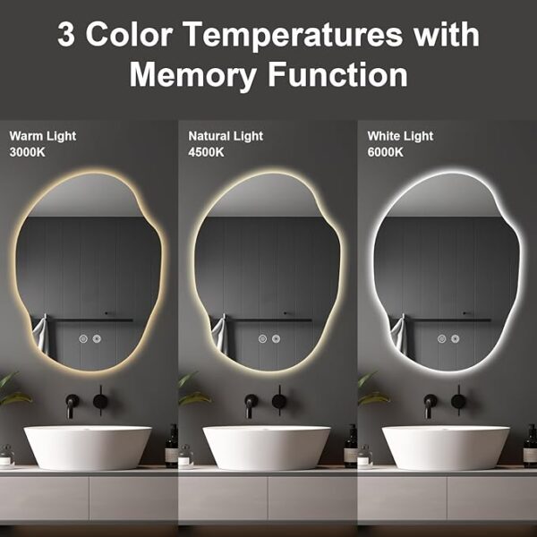 • Dimmable LED Light with 3 Color Temperatures: Choose from 3 color temperatures to suit your bathroom mood, with adjustable brightness via a touch sensor button for easy control.