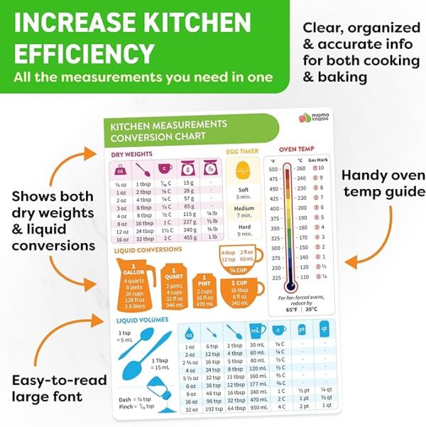 Ridiculously Easy To Use Kitchen Conversion Chart Magnet. Boost kitchen productivity with our 8” x 6” kitchen measurements conversion chart. Features clear, easy-to-read & well-researched data that lets you convert measurements effortlessly while cooking, baking & measuring. Streamline culinary tasks & enjoy ultimate convenience!