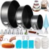 Everything You Need to Bake Cheesecakes & Layer/Tier Cakes: RFAQK brings everything you need for baking and decorating your favorite types of cakes. Here’s what this package includes: ✔ 9-inch cake pan ✔ 7-inch cake pan ✔ 4-inch mini cake Pan ✔ 30 Pcs Parchment Paper Liners ✔ 1 Cake Leveler ✔ 7 Icing Tips ✔ 2 Piping Bag Couplers ✔ 1 Icing Spatula ✔ 3 Scrappers ✔ 15 Disposable Piping Bags ✔ 40 Disposable Cupcake Liners