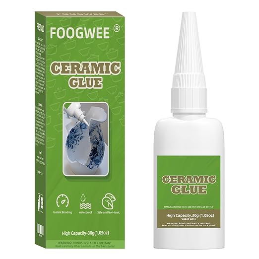 Strong and Quick Bonding: FOOGWEE ceramic glue offers reliable adhesion, designed to bond ceramic and glass items effectively within 10-45 seconds. Ideal for repair needs, this glue ensures fast and strong bonding. Note: The date on the top is the production date of the glue.