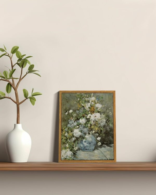 【Vintage Floral Wall Art】This vintage framed canvas wall art shows Pierre-Auguste Renoir’s 1866 oil painting “Bouquet de printemps” with harmonious color matching. Ideal wall decoration for bedroom, living room, kitchen or dining room