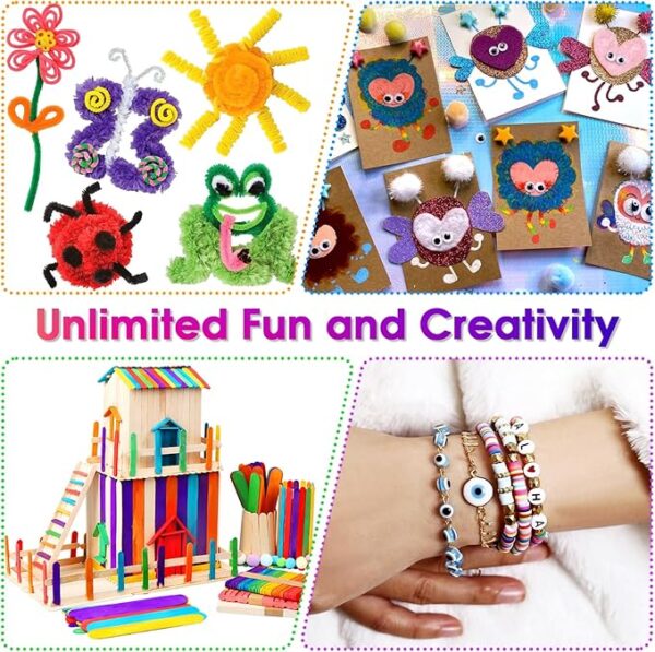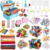 DIY Jewelry Making Crafts Materials for Kids 6-10 – Includes Storage Bag, fuzzy sticks, craft sticks, pom poms, felt pieces, craft papers, star shapes, feathers, sequins, sheet of gemstone stickers, googly eyes, acrylic crafts guka sheet, chain, sheets oflaser stickers, beads, letter beads, craft stick, colorful craft sticks, wooden clips, Safetu Scissors, elastic thread, tweezers, nano stickers, skeins embroidery floss,