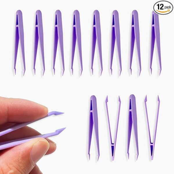 Craft Tweezers: 12 Pcs Plastic Tweezers for Beading Projects. Lightweight, precise, and safe for kids. Must-have tool for jewelry making!