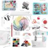 Create beautiful, handmade projects with the beginner sewing kit and compact sewing machine included in this mini sewing kit for kids and adults.