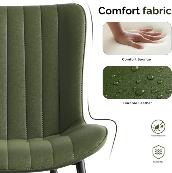 1.Dining Chair’s Material: Our modern dining chairs with faux leather and soft foam for ultimate comfort. And crafted with sturdy wood and metal, it ensures durability for dining rooms, offices, bedrooms, and outdoors. Perfect for families with children due to its easy mobility and lightweight.
