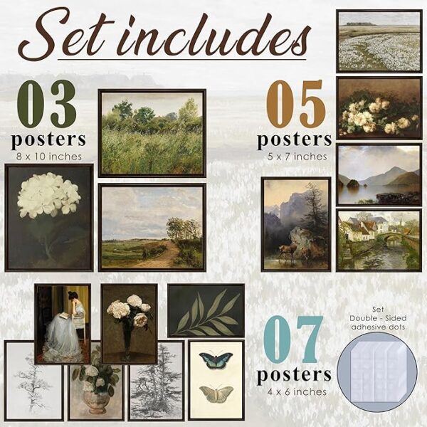 Chic French Decorative Wall Art Set: You`ll obtain 3pcs antique portray 8″x10″, 5pcs 5″x7″, 7pcs 4″x6″. There are masses of glue dots that will help you dangle this antique aesthetic print with out shopping for frames