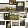 Vintage preppy retro wall decor: A sophisticated wall collage of moody landscape wall art, flowers and neutral portraits make these vintage prints ideal for your vintage home decor, vintage kitchen decor, vintage bathroom decor, vintage bedroom decor