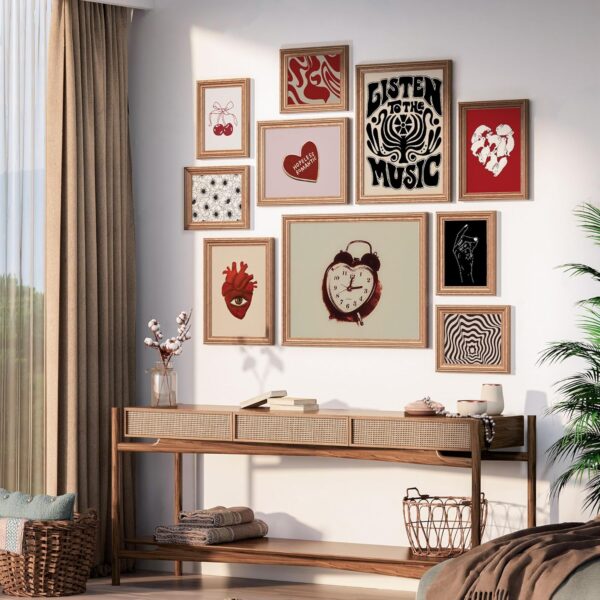 Our set of 17 pcs wall art come in standard sizes: 10 pcs 5″x7″, 4 pcs 6″x8″ and 3 pcs 8″x10″, making them easy to frame and display on your walls as soon as they arrive. Transform your walls into an art gallery with our collection of high-quality prints and posters that will elevate your space and bring it to life