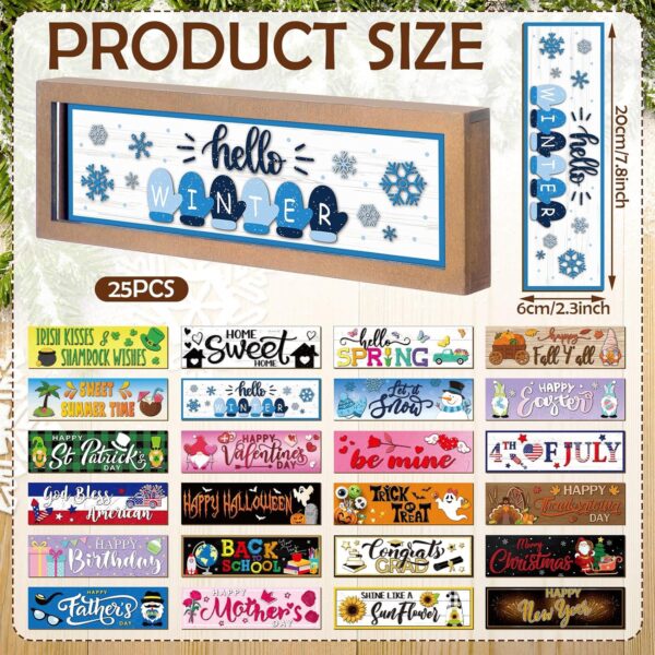 Bulk Quantity with Variety: the Interchangeable seasonal sign includes an assortment of 25 pieces of farmhouse wall decor signs, make sure that you have ample pieces for various occasions, events, and seasons; The bundle gives you choice and room for creativity in terms of arranging and displaying them