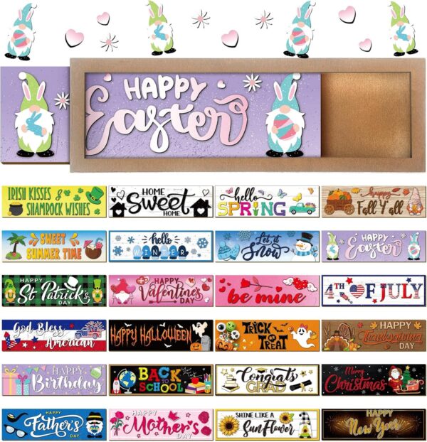 Easy Assembly and Switch: the seasonal interchangeable signs are user oriented, making interchangeable home sign convenient to change the themes; Only three wooden cards stacked are needed to fit perfectly into the frame, and when it’s time to switch, a gentle push will do the job