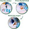Select a picture canvas, apply sparkly foil sheets using the included stickers, and watch the picture come to life!
