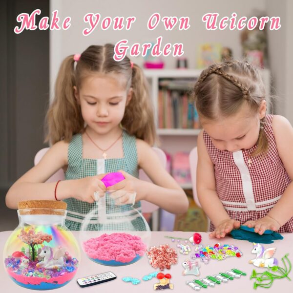 Our kit includes everything girls need to build and customize their unicorn garden. A girl can DIY her own magical unicorn garden using sparkling crystals, unicorns, innovative LED lights and more!