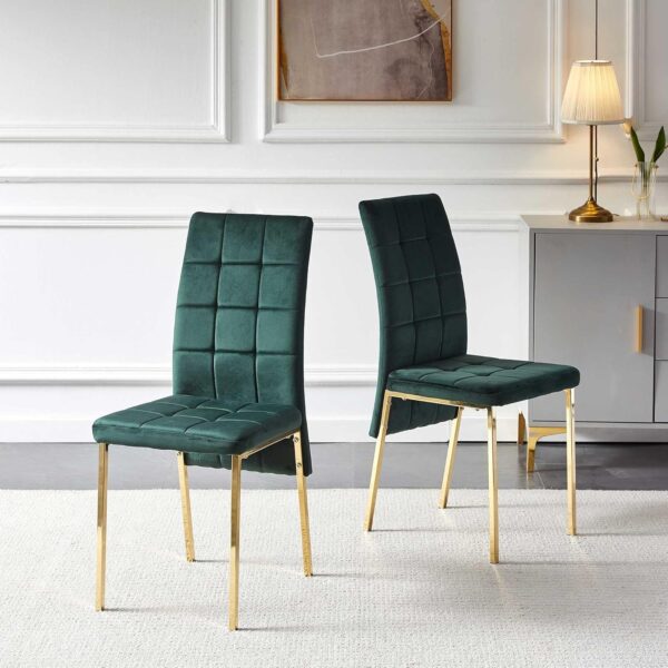 【Glam Deco Accent】These dining chairs cover by stylish velvet features a classic biscuit line design. The gold legs, definite and luxurious, will stand out in your home.