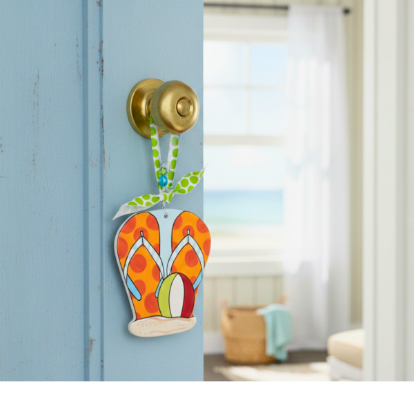 Be the first to review “Vibrant Flip Flop Hanging Decoration With Blue Striped Sandal Strap”