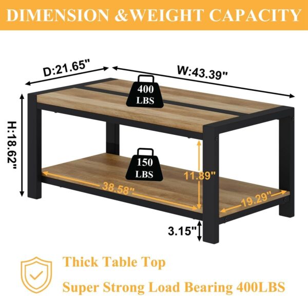 Ample Storage Space: Featuring a two-tier shelf design, our coffee table for living room offers plenty of space to keep your daily essentials within reach. Whether you’re storing magazines, books, or remote controls, its spacious layout ensures a clean living space.