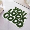 You Look Good” Funny Bath Mat – Green Microfiber Bathroom Rug, Non-Slip & Washable (25”x21”)