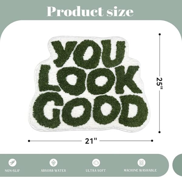 • VIBRANT DECOR:The funny bath mat lends a beautiful preppy decor element to your bathroom. The funny sage green bathroom rugs available to meet your different needs,It’s also aesthetic green color bath rug. The cute you look good rug can be used for bathroom doormat, laundry room, bedroom, living room, kitchen sink as area rug and floor rug.