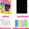 Scratch paper art products feature bright colors and patterns hidden beneath a matte coating, plus a wooden stylus to reveal them with just a simple scratch. Package including: 50 Sheets Black Scratch rainbow art paper & 5 Wooden Stylus & 4 colorful stencils & 1 brush. Scratch rainbow art sheet size: 7.2 x 5 inch / 18.5 x 12.5 cm (L*W)