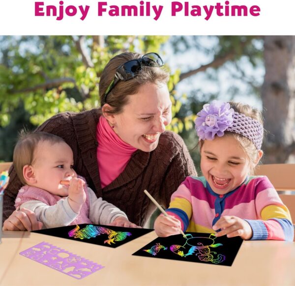 Our scratch art is perfect for 5 year old girl birthday gifts.The arts and crafts for girls comes with an exquisite box, perfect travel toys & car game for kids. Ideal gift for kids birthday, party favors, class activity and Valentine, Easter, Halloween, Children’s day, Thanksgiving, Christmas gifts and stocking stuffers